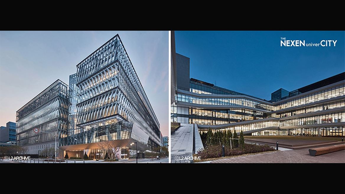 In addition, the exterior of the facility is materialized with tire tread patterns that defines the industry’s attributes. At the lobby, an amazing media wall that is 30 meters wide and 7 meters high, is displayed through a video that represents the creative and artistic concept of ‘THE NEXEN univerCITY’. The environment friendly building was designed with a solar power system, a cooling and heating ventilation ground system, and a green rooftop to prevent thermal heat damage that obtained a level 1 building energy efficiency rating certificate from the Korea Energy Agency.